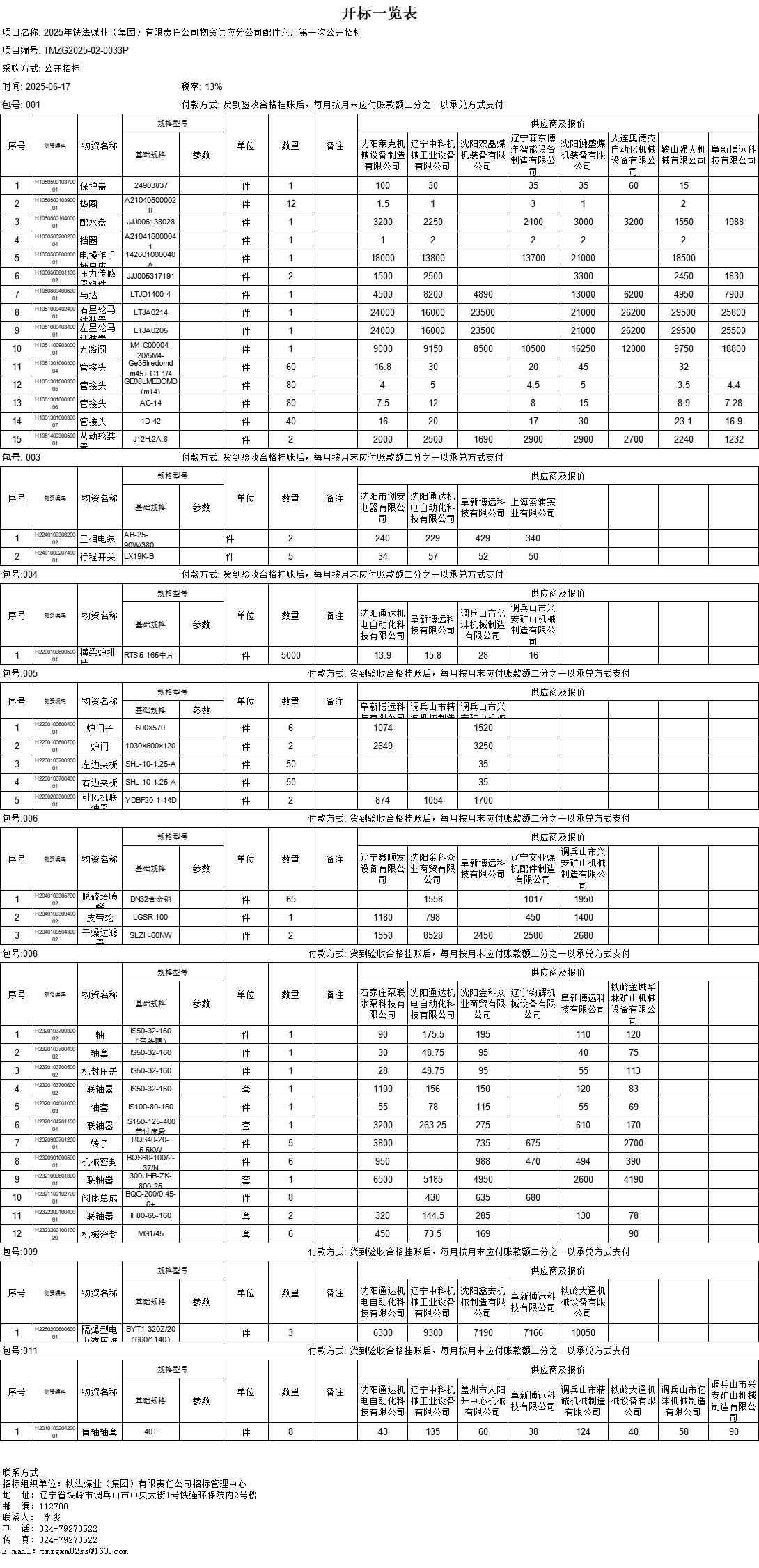 2025年6月17日配件6月第一次公开招标项目开标记录表(0033P)