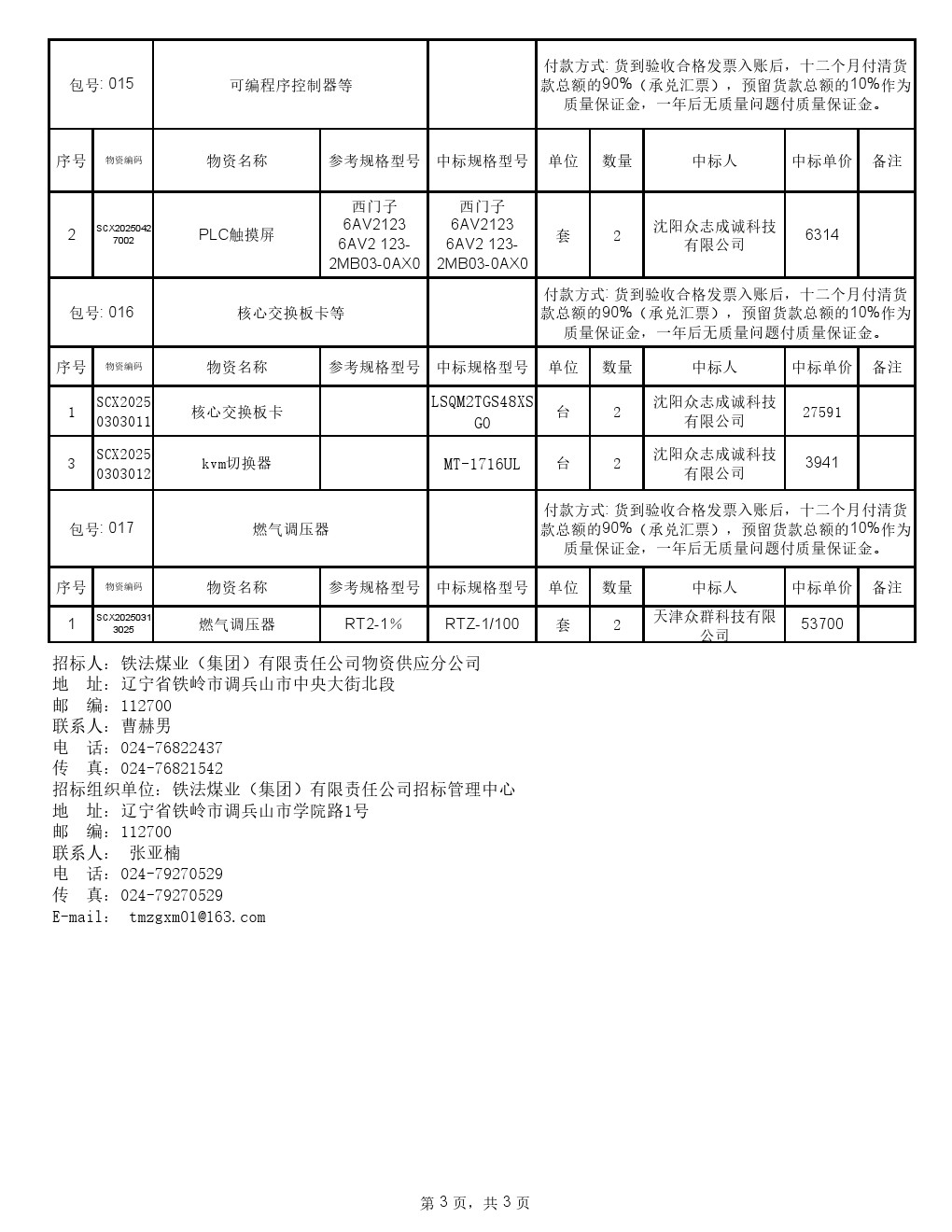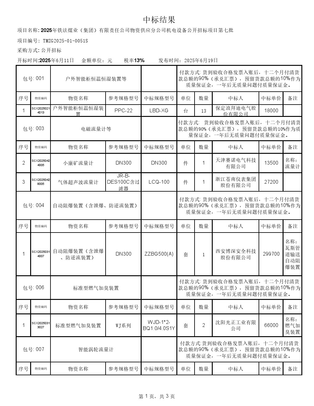 2025年6月11日机电设备公开招标中标结果公示(0051S)